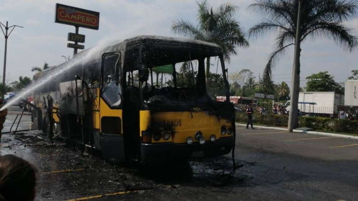 Usuarios de redes sociales compartieron los videos en los cuales se observa al autobús siendo consumido por las llamas.