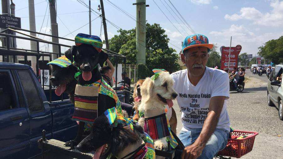 Don Carlos indica que la finalidad de sacar a sus perritos a pasear en los diferentes lugares que adaptó a su bicicleta es porque le gusta mostrarlos a los participantes de la caravana.