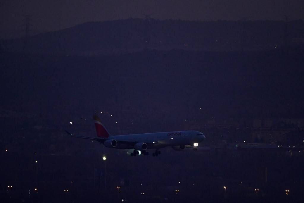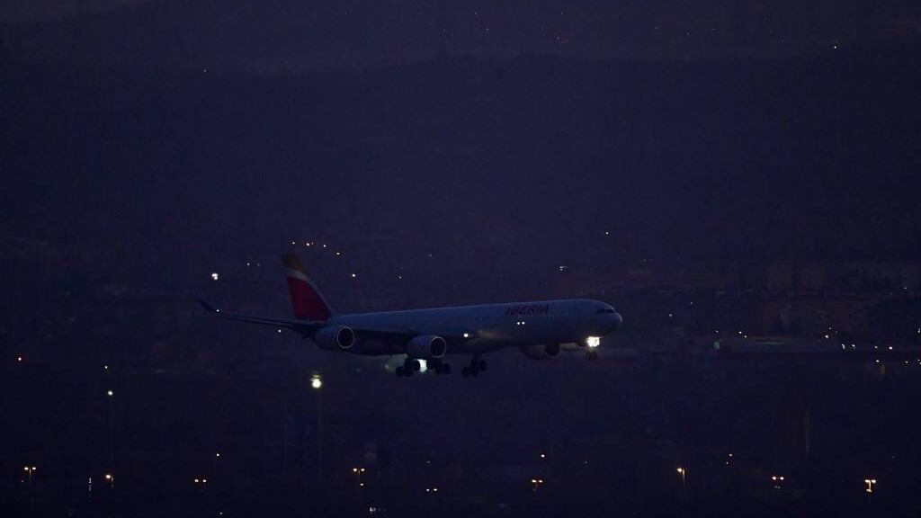 La aeronave había partido de la capital española en horas de la tarde, pero tuvo que devolverse luego de que se reportara "un problema de motor poco después del despegue" y de que se reventara uno de los diez neumáticos.