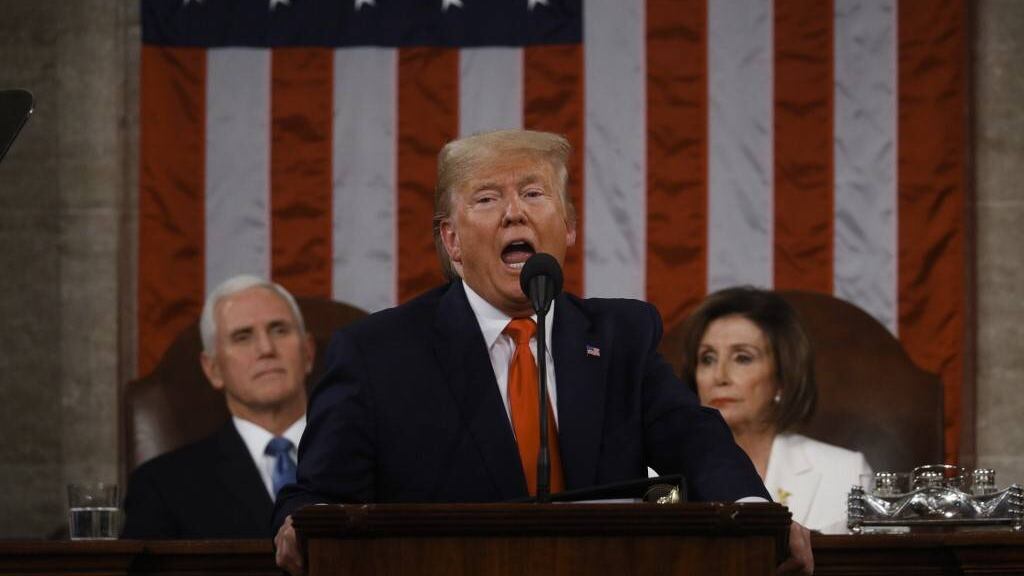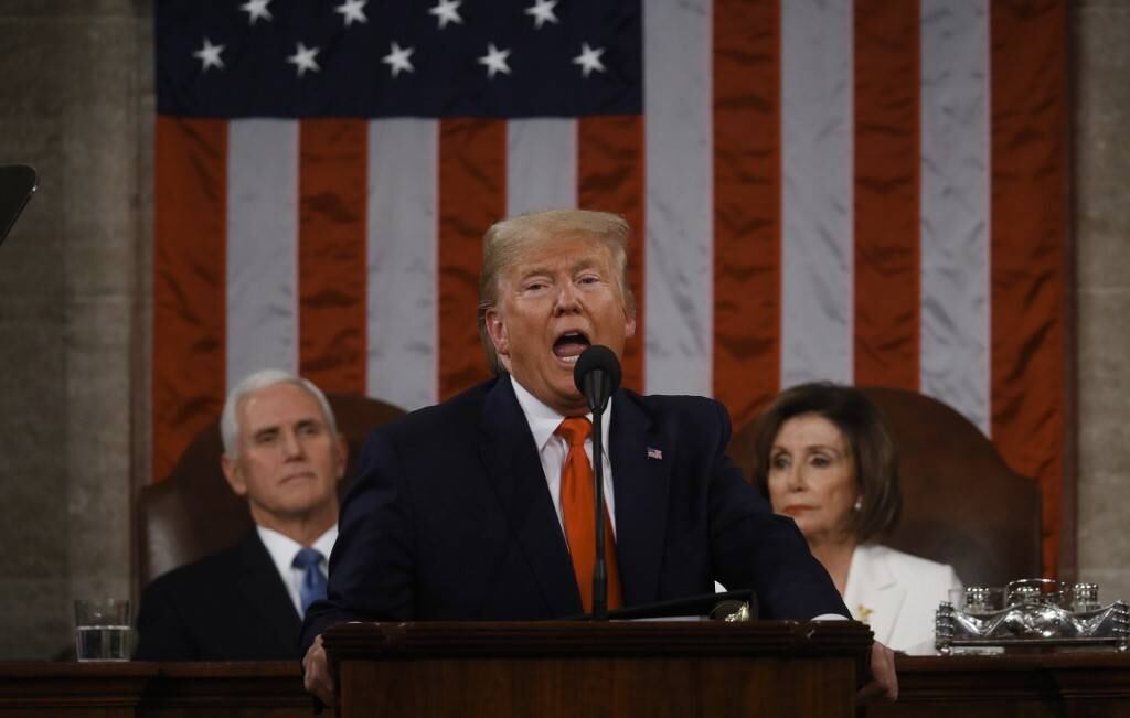 Trump llegaba a la cita en el Congreso envuelto en la polémica por el juicio político en su contra que actualmente se lleva a cabo en el Senado, mismo que podría concluir esta semana con su absolución.