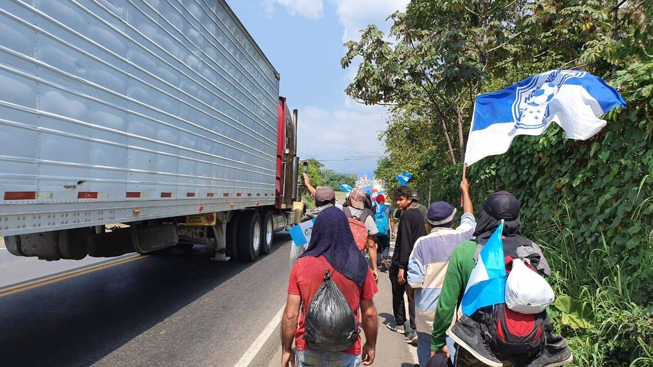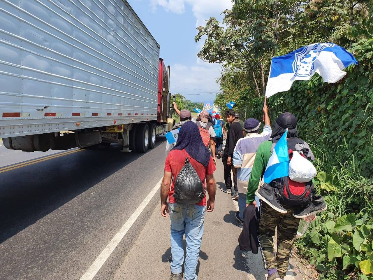 Un grupo pequeño de migrantes hondureños se dirige con rumbo a Tecún Umán, en San Marcos.