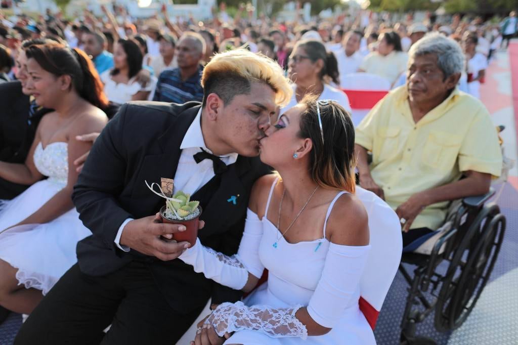 La boda masiva es organizada por la oficialista Radio Ya, con el apoyo del gobierno y jueces, que en los últimos 17 años han unido gratis en matrimonio a más de 8.500 nicaragüenses, según los anfitriones.