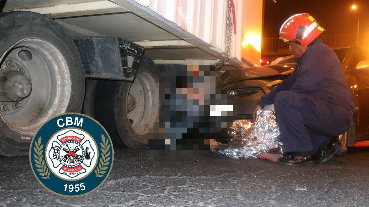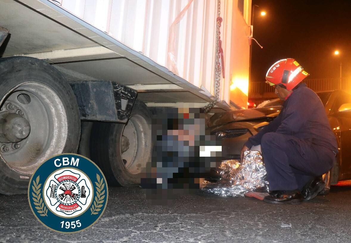 El Cuerpo Voluntario de Bomberos atendió un accidente en el Anillo Periférico, ruta hacia Avenida Elena, en la zona 3. En el cual un motorista colisionó con un vehículo; sin embargo el motorista perdió la vida.