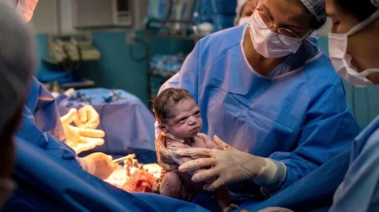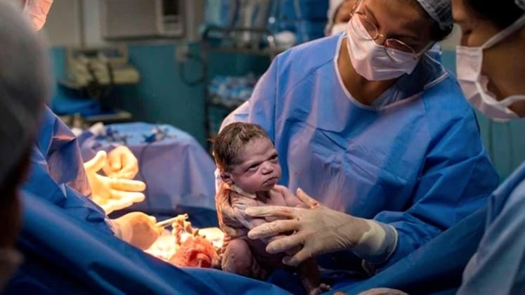 La madre de la niña, Daiane de Jesús Barbosa, estaba consiente en ese momento y junto a los médicos observó la rara expresión de la bebé.