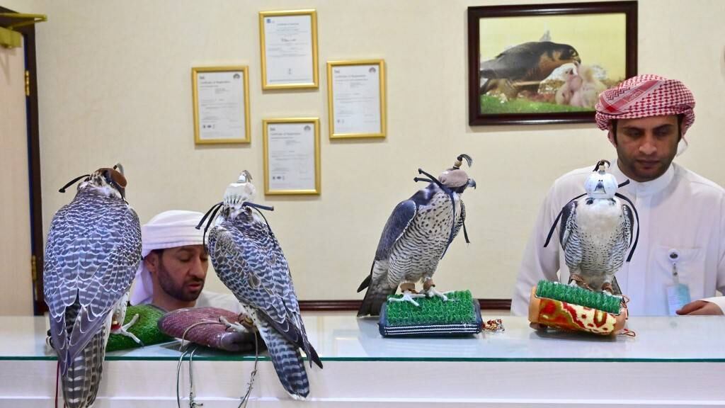 Los halcones, clasificados como especies en peligro de extinción, son el emblema nacional de los Emiratos Árabes Unidos.