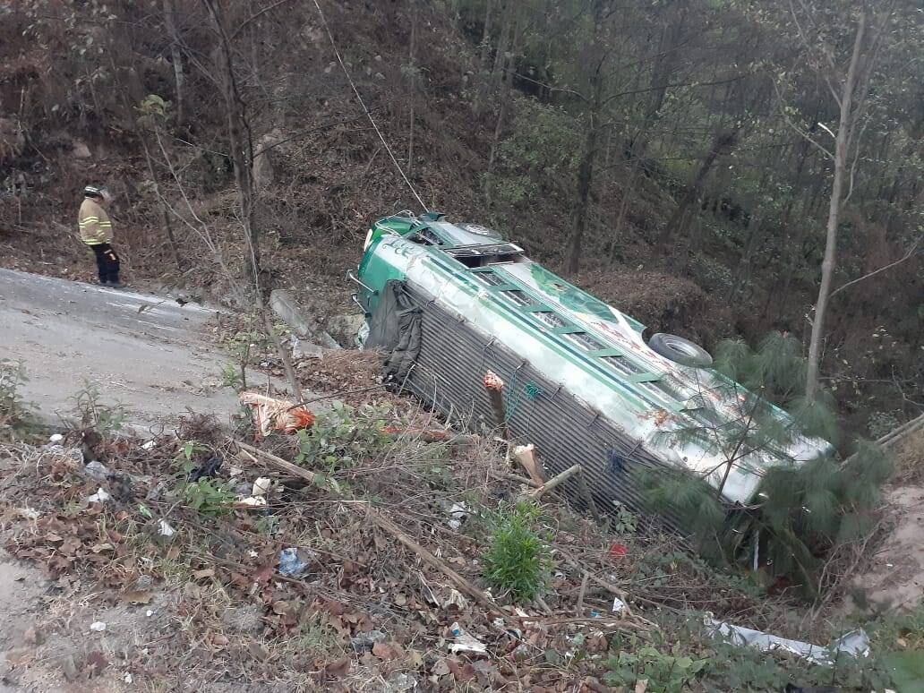 Se trata de un bus de los Transportes Tacaná. El vehículo cayó en una hondonada en jurisdicción de Nahualá, Sololá, se informó.