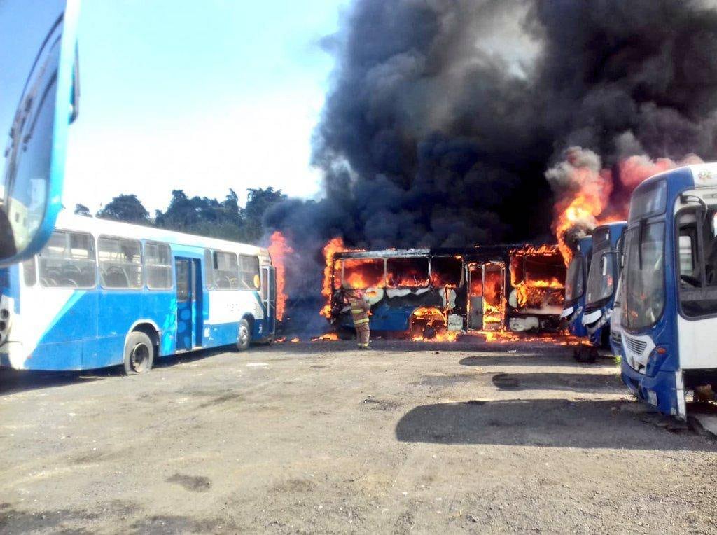 Este jueves se registró un incendio en el predio de autobuses del Transurbano.