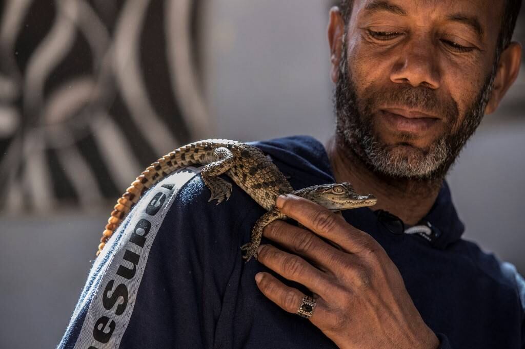 En su casa de la aldea egipcia de Gharb Soheil, a 900 km al sur de El Cairo, Mamdouh Hasan, de la etnia nubia, acaricia una cría de cocodrilo ante la mirada desconcertada de los turistas.