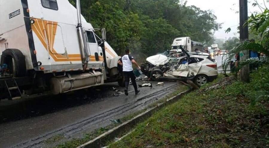 Un violento accidente de tránsito tuvo lugar en el km 249 de la ruta al Atlántico, a inmediaciones de la aldea Cerro Azul, en el municipio de Morales, Izabal.