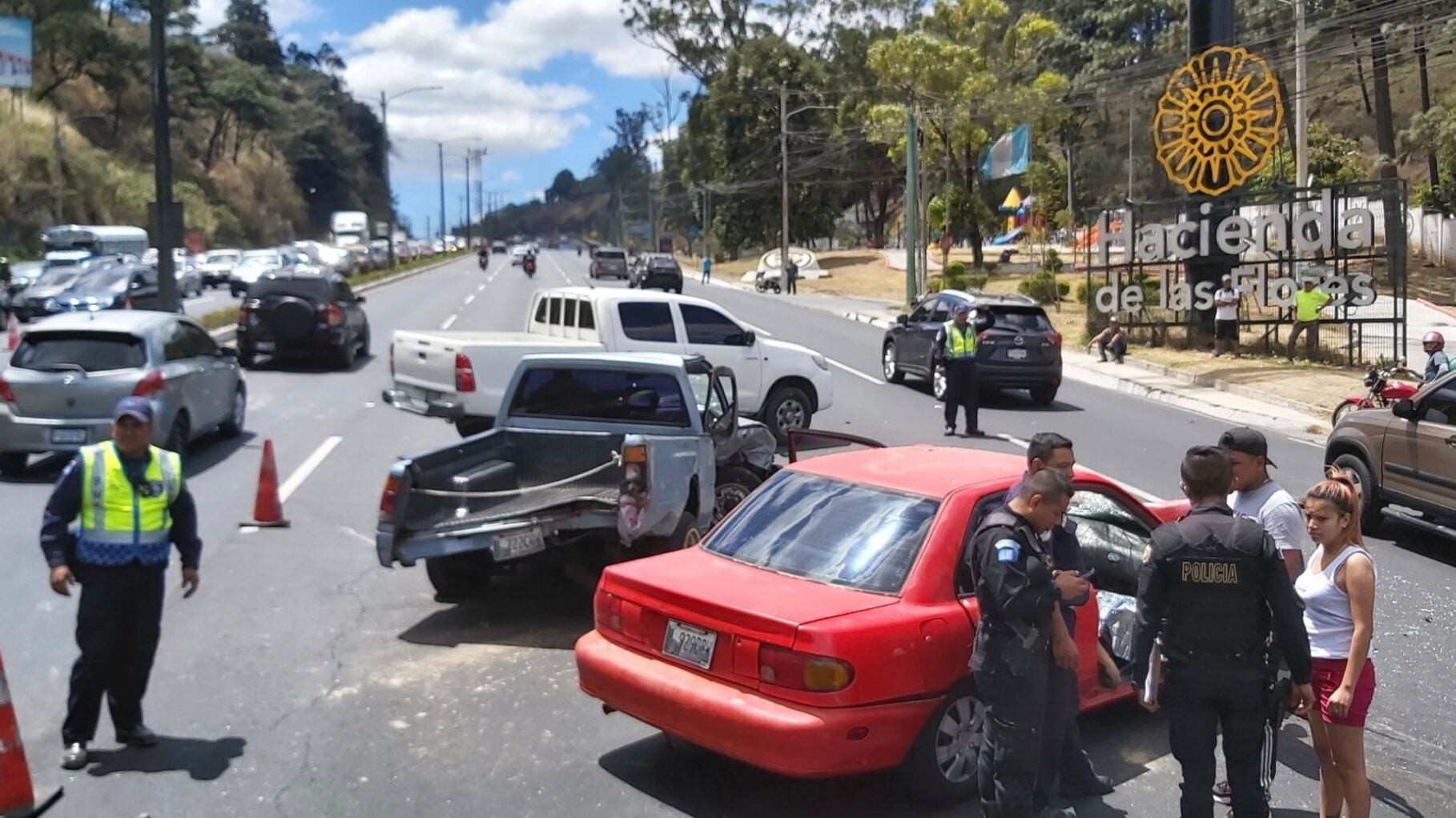Agentes de la Policía Municipal de Tránsito de Villa Nueva también se acudieron al lugar del choque para regular la circulación vehicular.