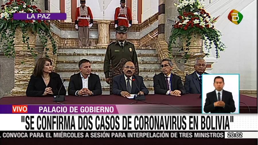 Bolivia registró los dos primeros casos de coronavirus en su territorio, confirmó este martes el ministro de Salud, Aníbal Cruz.
