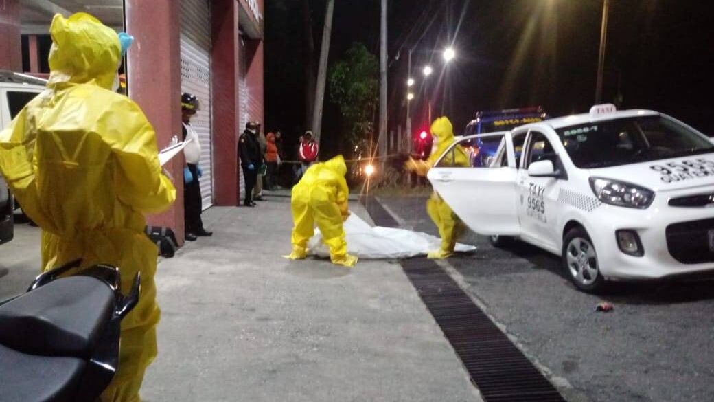 La noche de este jueves, el Ministerio Público (MP) procesa la escena de una mujer que falleció en el interior de un taxi. Además, se han informado que los peritos del MP utilizan un traje especial.