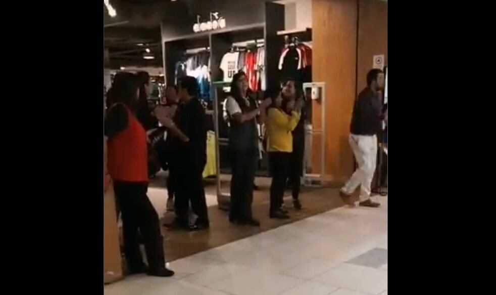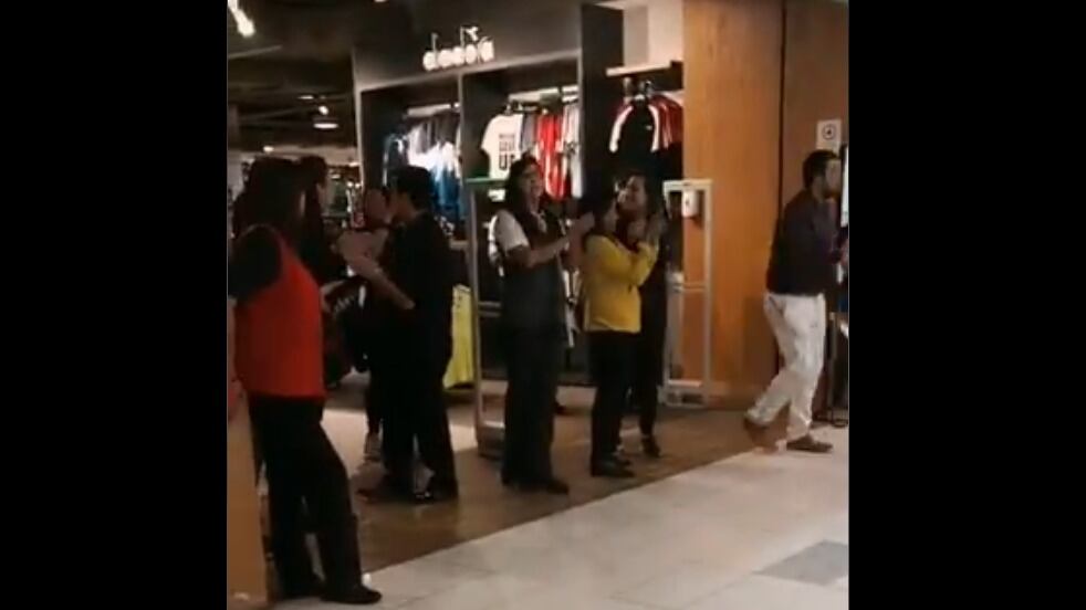 "¡Cierren el mall!" o "¡Que se vayan pa' la casa!", eran algunas de las consignas que gritaban los empleados de centros comerciales como el Costanera Center o el Parque Arauco, golpeando las barandas de escaleras, los basureros o las persianas metálicas de las tiendas.