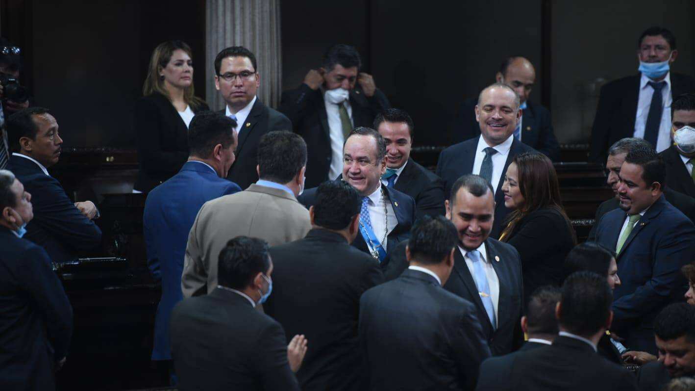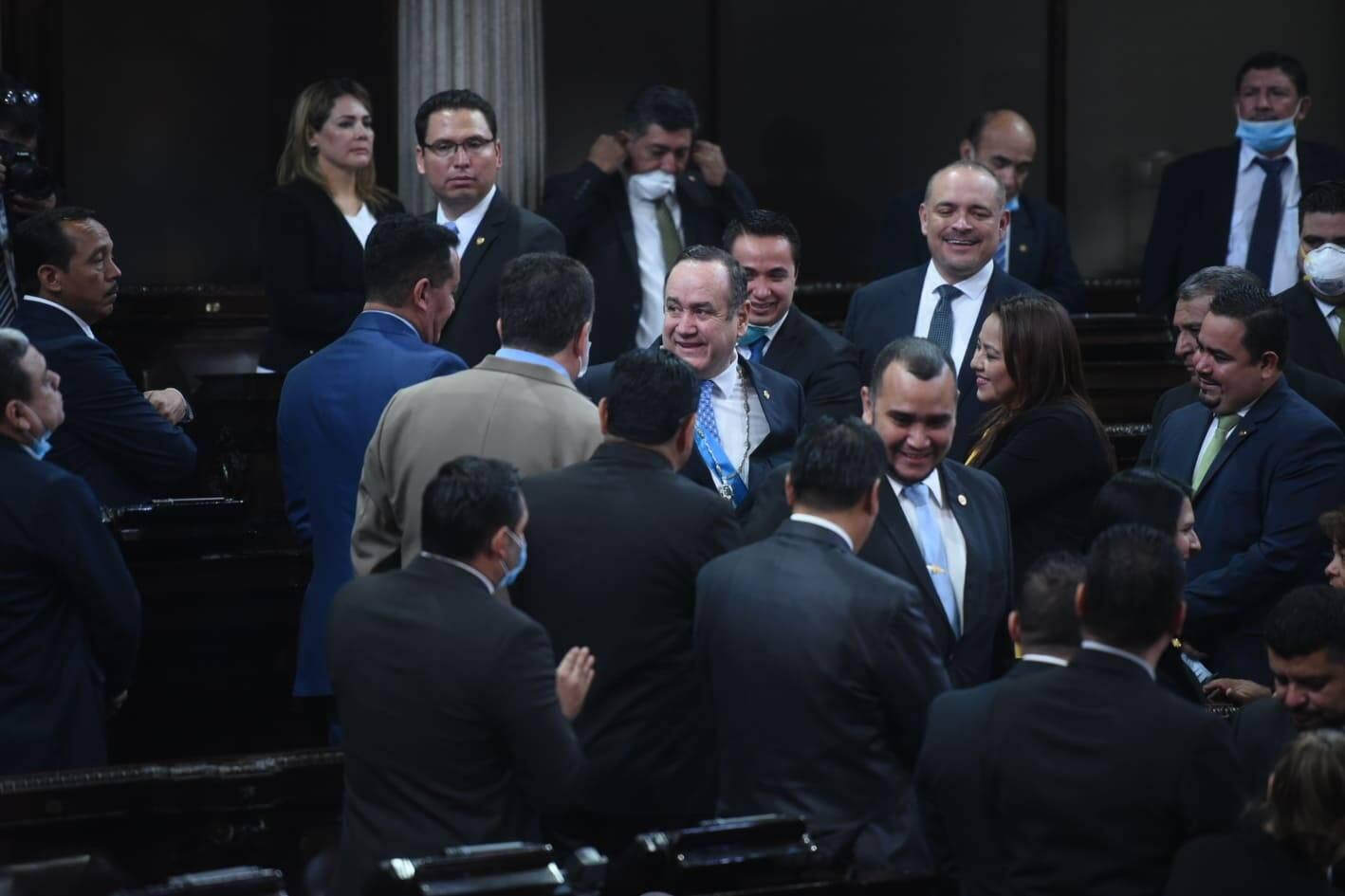 Varios de ellos fueron captados saludando efusivamente a Giammattei con abrazos, apretones de mano y hasta besos.