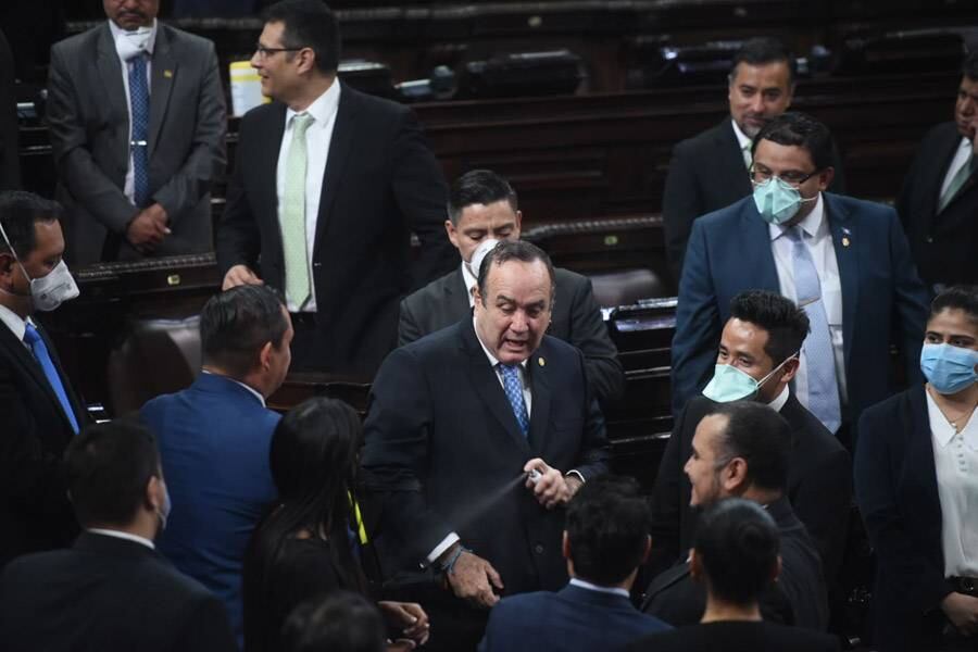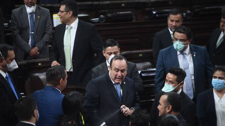 El presidente, Alejandro Giammattei, acompañado de su gabinete de ministros, instó a los diputados a aprobar sus medidas económicas, que coinciden con las de las cámaras empresariales.