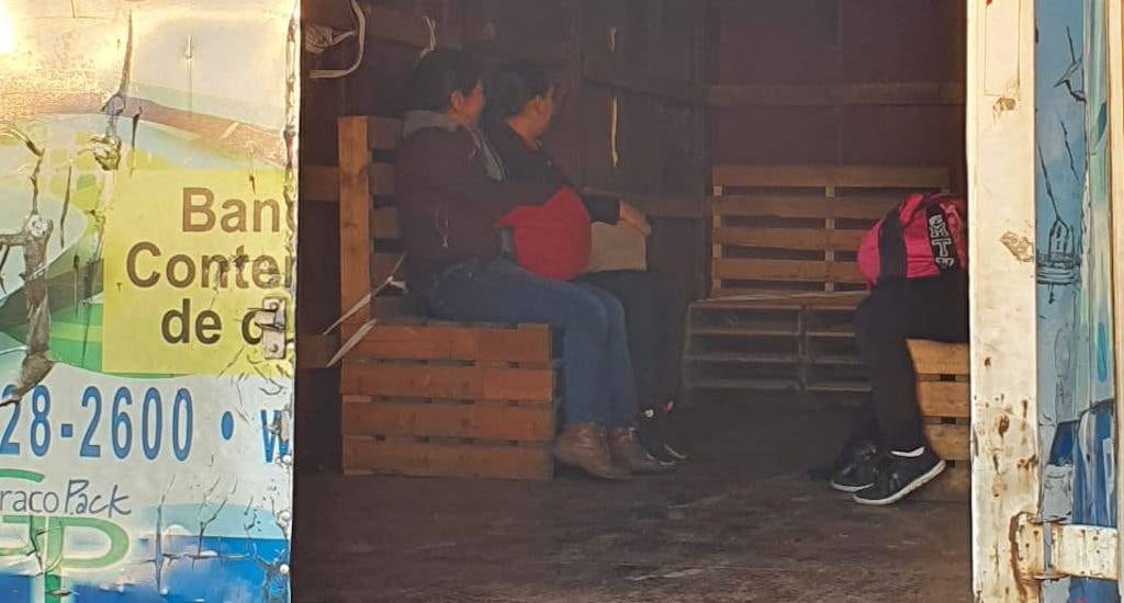 Allí había por lo menos cuatro personas, las cuales estaban en asientos de fabricación artesanal.