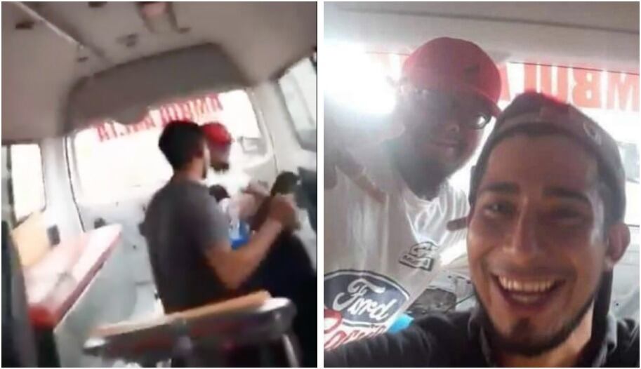 Entre carcajadas y una supuesta tos, dos jóvenes y una señorita se grabaron mientras viajaban abordo de una ambulancia en Asunción Mita, Jutiapa. Ellos se divertían luego de que jugaron una broma a los Bomberos Voluntarios de la localidad.