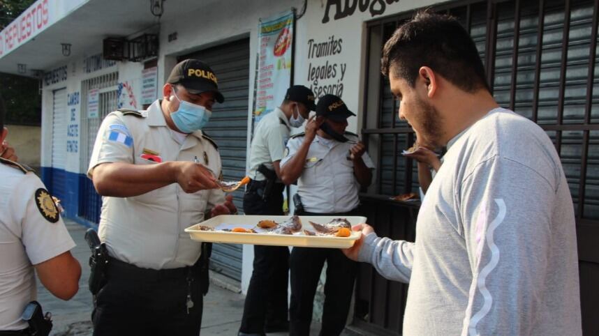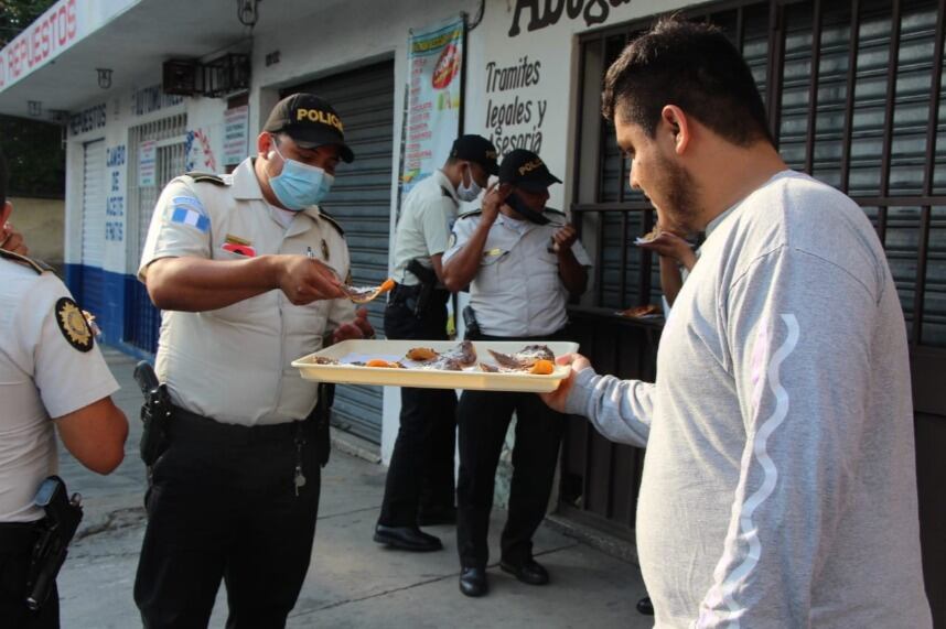 "Luego de unas palabras de agradecimiento por el trabajo que realiza la PNC, el joven repartió la comida a todo el personal que realizaba operativos", compartió la entidad policial.