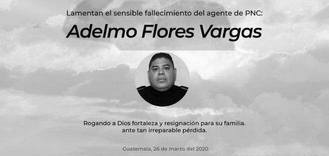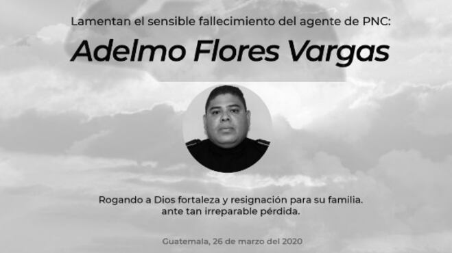 La Policía Nacional Civil (PNC) informó este jueves 26 de marzo que el agente Adelmo Flores Vargas, de 34 años de edad, falleció.