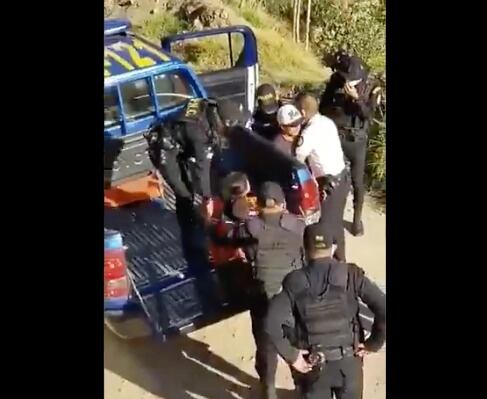 “Unos patrulleros en Sololá capturando a un campesino, quien iba acompañado de su niña”.