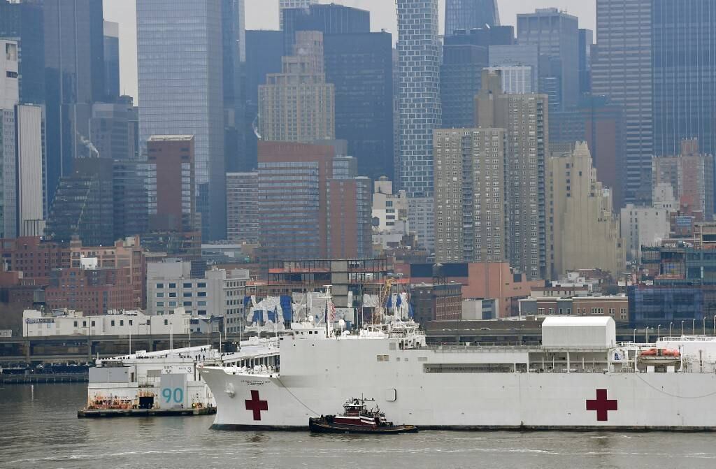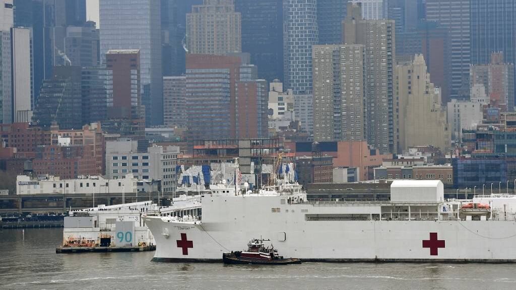Nueva York recibió ayer al “USNS Comfort”, un buque de mil camas, 12 quirófanos y un equipo de 1,200 trabajadores, mientras la pandemia sigue propagándose en Estados Unidos, lo que llevó al mandatario Donald Trump a prorrogar hasta fin de abril las recomendaciones de confinamiento. Recibirá a pacientes que requieran cuidados intensivos no relacionados con el virus para permitir así que los hospitales se centren en los enfermos de Covid-19.