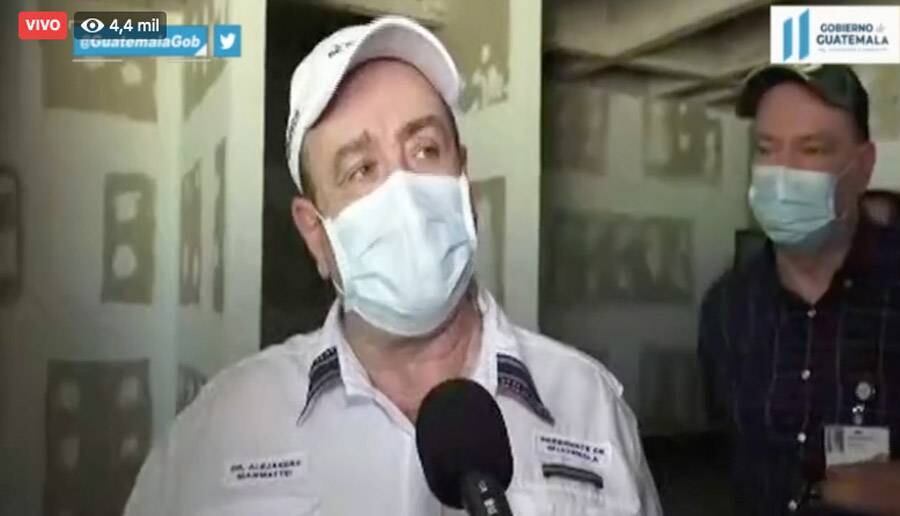 Aquí con los altos personeros de Banrural, quienes han puesto a disposición del gobierno estas instalaciones. Aquí donde estamos va a funcionar el intensivo y en el salón del frente estará el encamamiento", indicó.