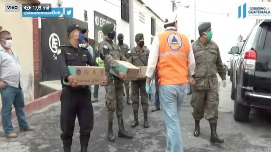 De acuerdo a la señal compartida por el Gobierno, el primer camión llegó hacia la 23 calle y 12 avenida "A", en donde luego de recibir instrucciones por parte de altos mandos castrenses, los soldados iniciarían con la repartición.