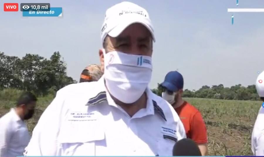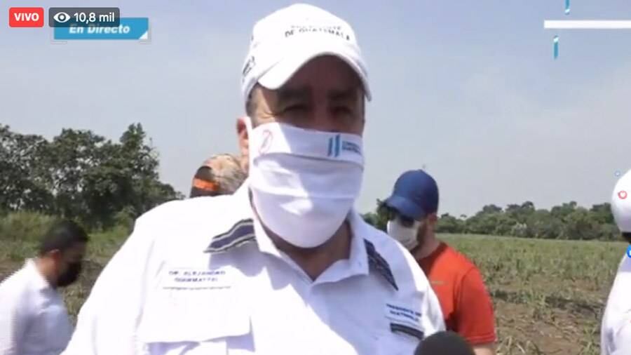 El presidente Alejandro Giammattei viajó al suroccidente del país para supervisar un terreno en donde se construirá otro hospital temporal para atender a pacientes de Covid-19 coronavirus.