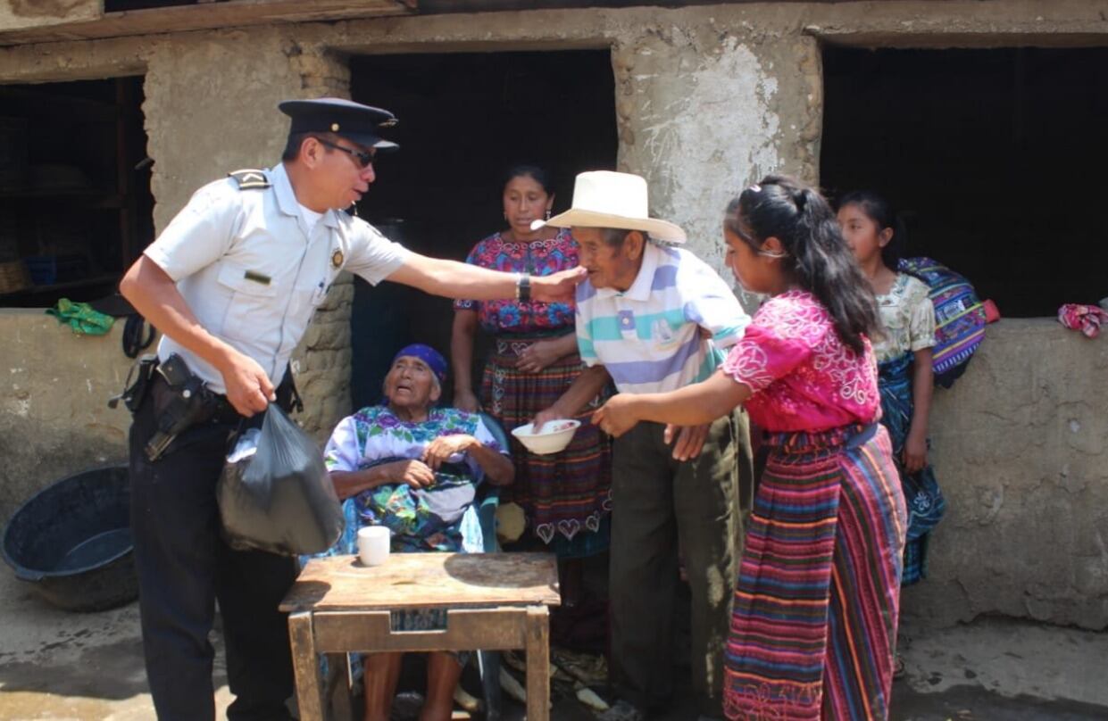 Pensando en ello, agentes de la PNC acudieron a la residencia de don Saturnino, de 90 años, y doña Albina, de 85, para entregarles el donativo, el cual consistía de productos de consumo diario, según apunta la publicación.