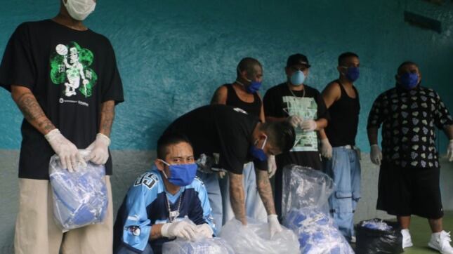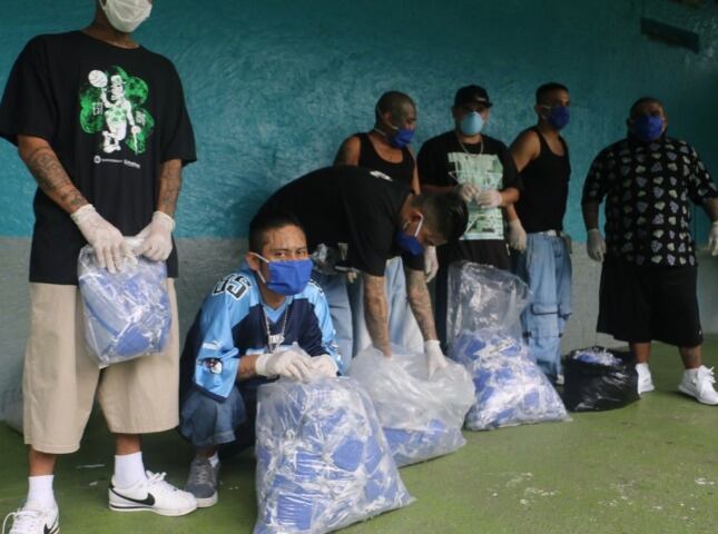Privados de libertad del sector 11 del Preventivo de la zona 18 le entregaron este jueves mascarillas a las autoridades del Sistema Penitenciario.