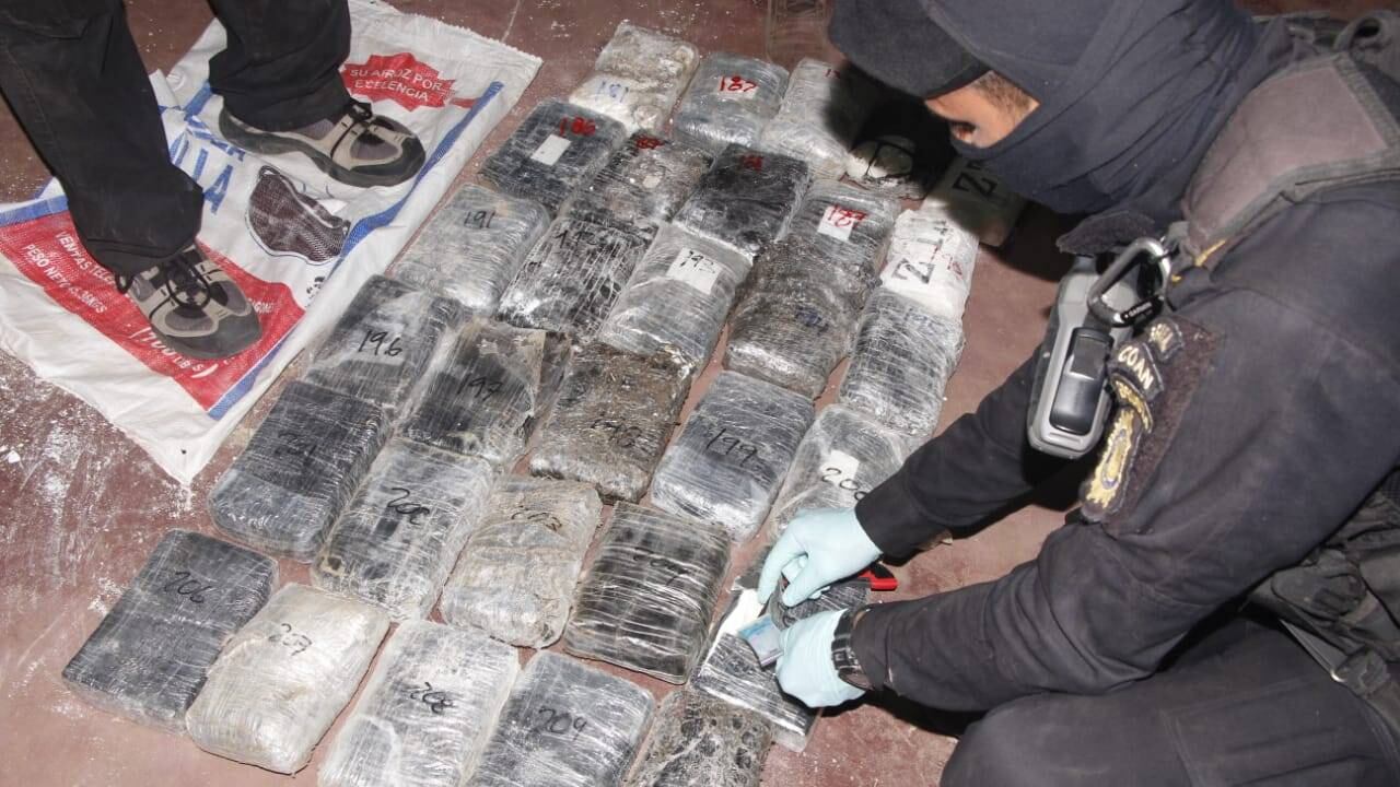 La PNC informó que un elemento del Ejército fue capturado durante el operativo, luego de que se le decomisara dos paquetes con cocaína dentro de una mochila.
