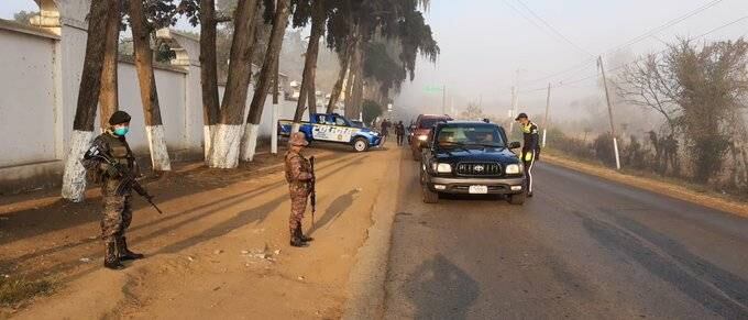 Elementos del Ejército y de la Policía Nacional Civil resguardan el perímetro de la localidad.