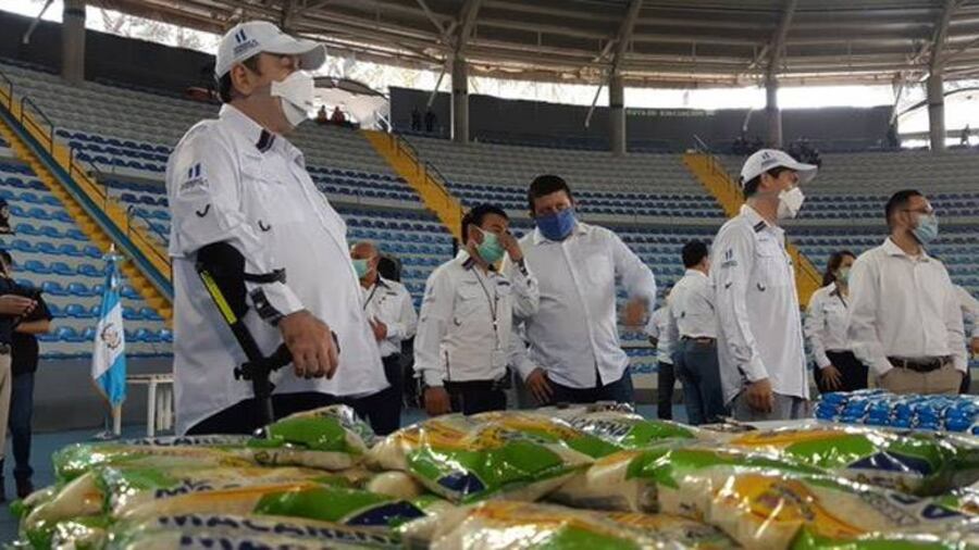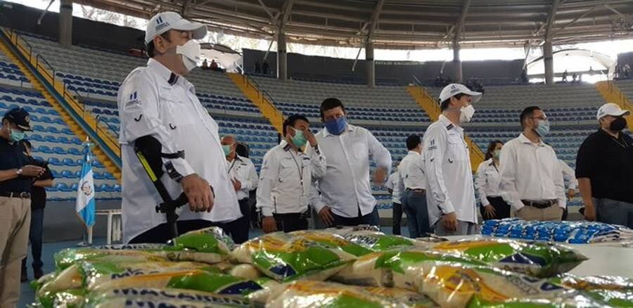 Varios ministros del Gabinete de Giammattei también acudieron a este lugar en donde voluntarios y elementos del Ejército de Guatemala participan en el embalaje de los víveres.
