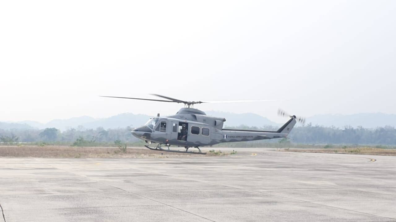 El helicóptero llegó al aeropuerto de Puerto Barrios y luego se dirigió al Comando Aéreo del Norte.