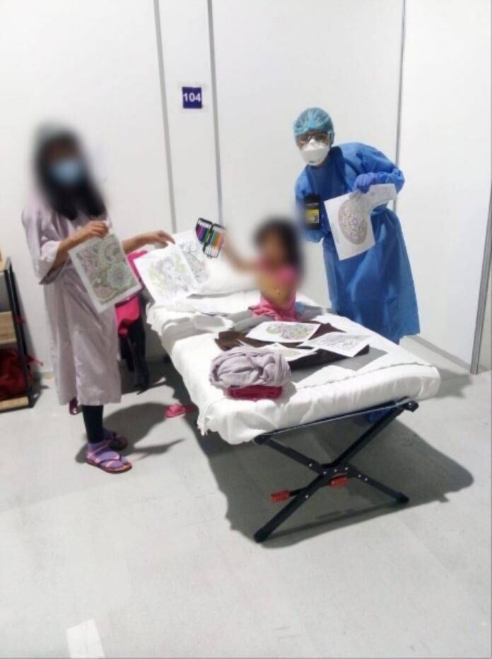 El Ministerio de Salud Pública y Asistencia Social (MSPAS) brinda apoyo emocional a pacientes con Covid-19 que se encuentran internados en el hospital temporal del Parque de la Industria.