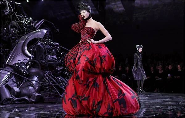 –Eso varía con el día y el humor. Él, para mí, conecta a la emoción, o a los shows más melancólicos, pero en otros días, sus colecciones más enérgicas son vigorizantes. Las veo regularmente, así que eso cambia. Los shows que para mí son fundamentales son “Dante” (Otoño/invierno 1996), “The Horn of Plenty” (Otoño/invierno 2009) , “The Widows of Culloden” (Otoño/Invierno 2006), La colección Ready-to-Wear de Couture Givenchy Otoño/invierno de 1998, la colección de Blade Runner y la colección de Givenchy Haute Couture de Otoño/Invierno 1997, “Eclect Dissect”. Esas generalmente son las principales pero mi pieza favorita fue la primera que mi esposo me dio: unos zapatos sin usar de la colección Otoño/Invierno 2009 “The Horn of Plenty”.