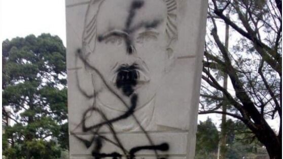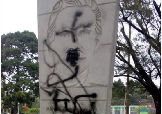 El monumento al exalcalde y expresidente de Guatemala, Álvaro Arzú Irigoyen, fue vandalizado por desconocidos.