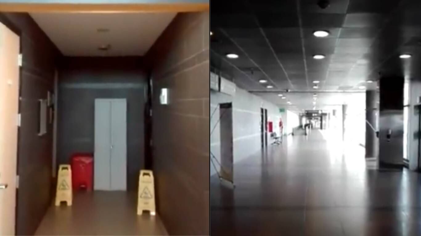 En el clip, se observa cómo el trabajador, utilizando su teléfono celular, graba mientras se prepara para entrar al sanitario, tras percatarse de que algo raro estaba sucediendo. Antes, enfoca rápidamente los pasillos para demostrar que no hay nadie con él en ese momento.