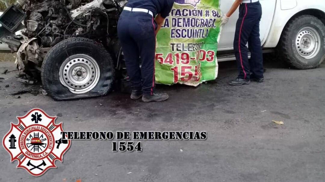 Un vehículo tipo picop y un autobús chocaron de frente cuando se movilizaban por el kilómetro 93 de la ruta que conduce del municipio de La Democracia hacia La Gomera, Escuintla.