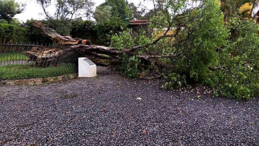 Según se observa en las fotografías compartidas en la red social, el árbol cayó por encima de la plaqueta informativa al pie del mismo.
