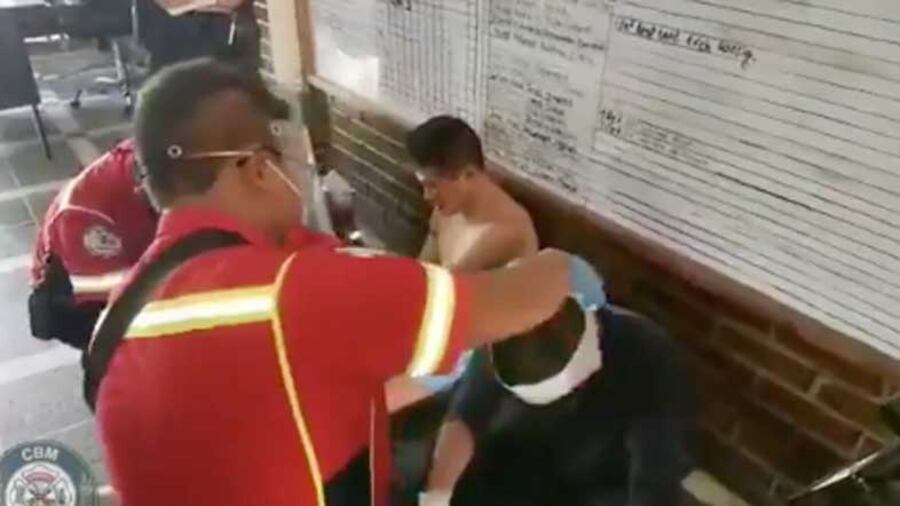 Según las imágenes compartidas por los bomberos, las dos personas fueron linchados y estuvieron a punto de ser quemados por una turba en un sector de la colonia Landívar.