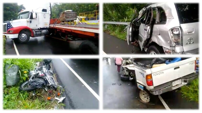 Juan Carlos Aquino, portavoz de la institución, refirió que en el percance se vieron involucrados un tráiler, una motocicleta, un vehículo tipo camioneta y un picop.