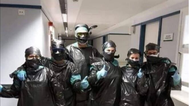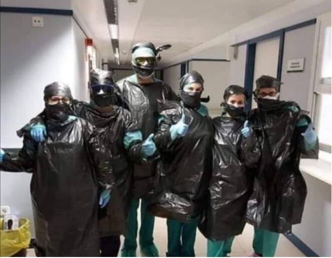 En redes sociales circulan varias fotografías de médicos en el mundo que sufren a diario la carencia de material de bioseguridad.