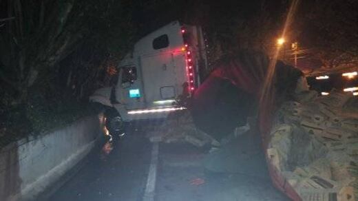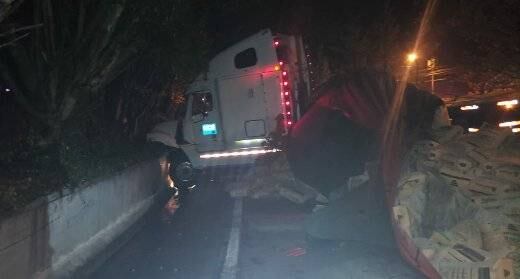 Además, la carga de cemento que transportaba quedó esparcida sobre la cinta asfáltica, por lo que se trabaja para su retiro.