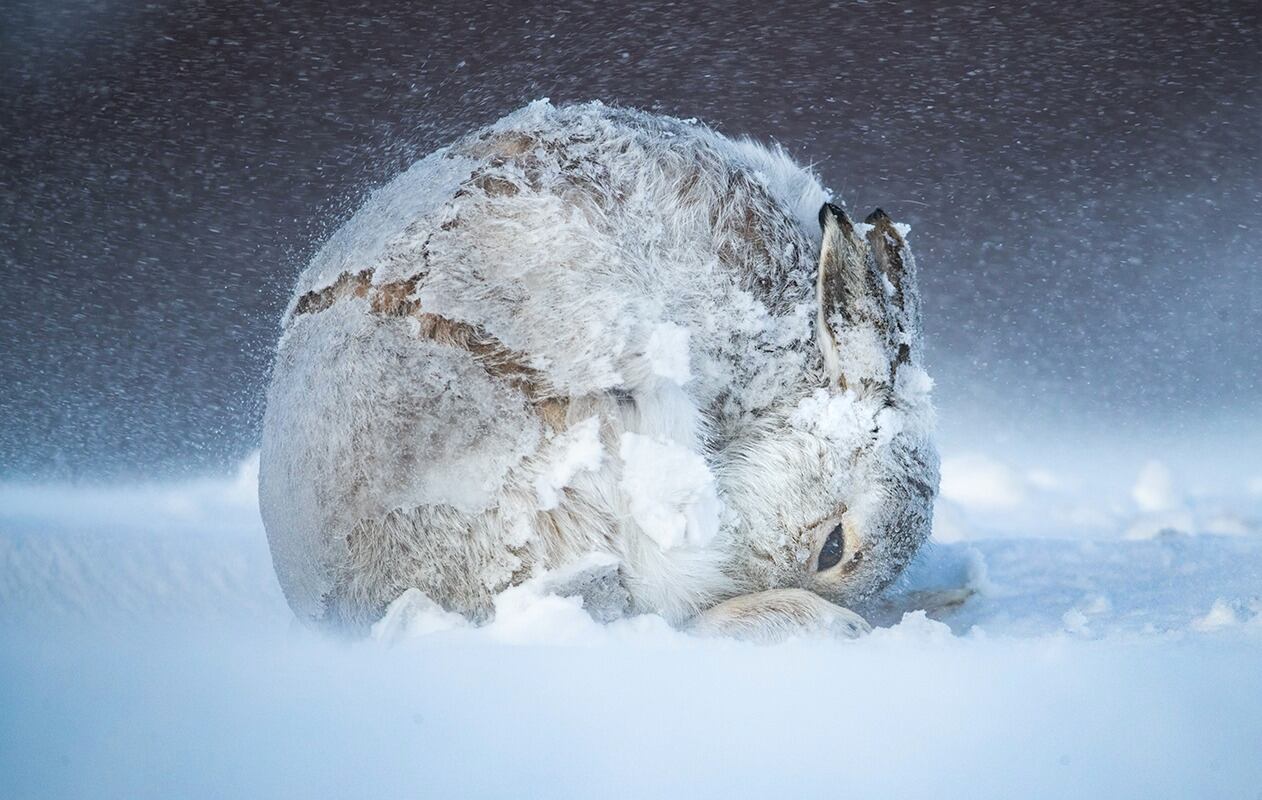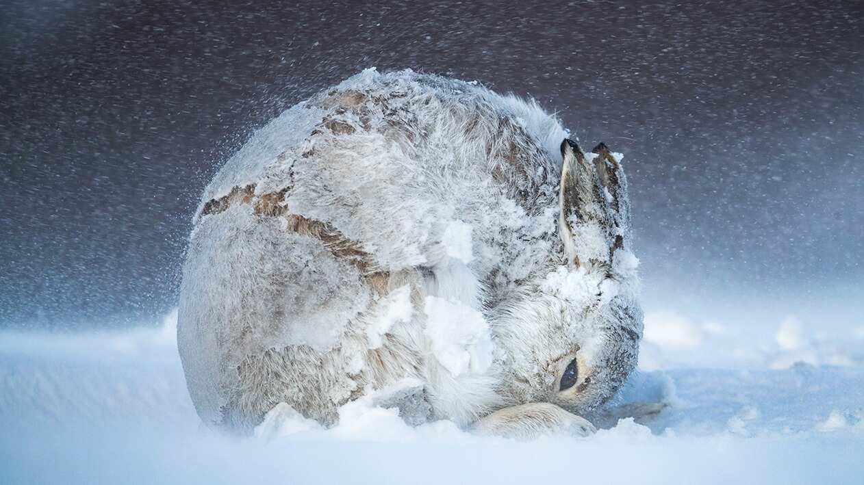 El ganador del gran premio de este año, Andy Parkinson, ha pasado más de 15 años documentando las liebres de montaña de Escocia. Después de horas en el frío brutal, capturó esta imagen llamada ‘Bola de liebre’ de una liebre, acurrucada con una cáscara de hielo formándose en su pelaje. Andy Parkinson / Reino Unido.
