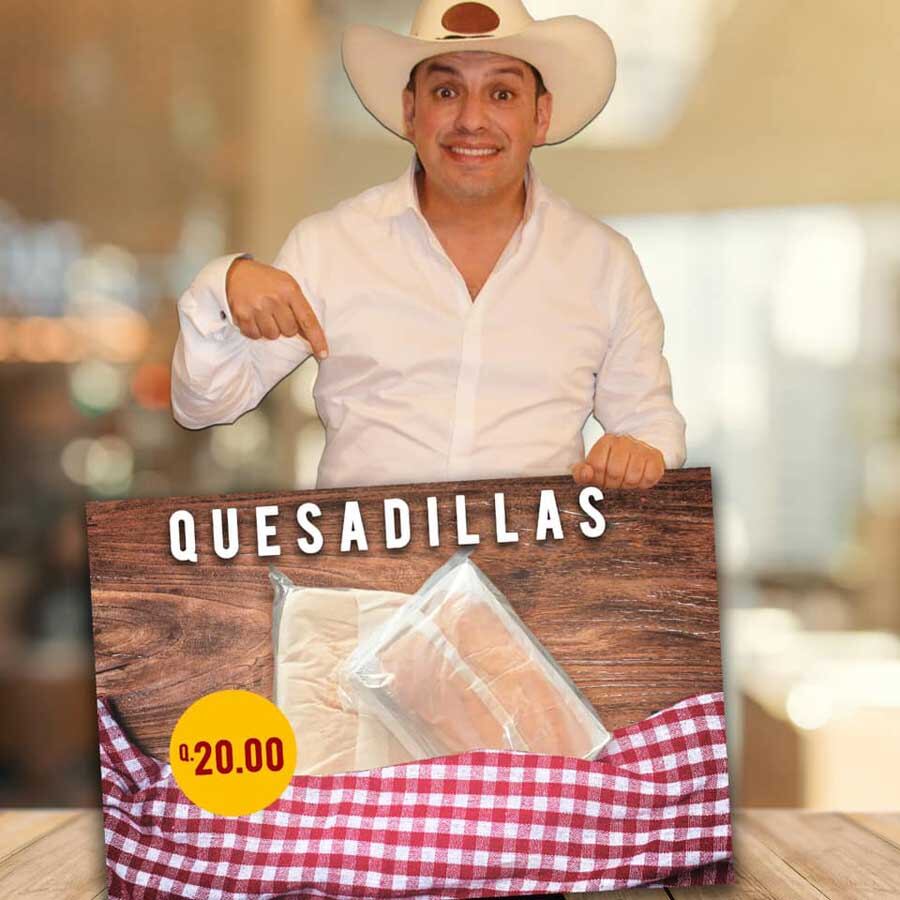 El precio de las quesadillas, anunciadas por el mismísimo Teco (Hugo Aldana), tiene un precio de Q20 por unidad.