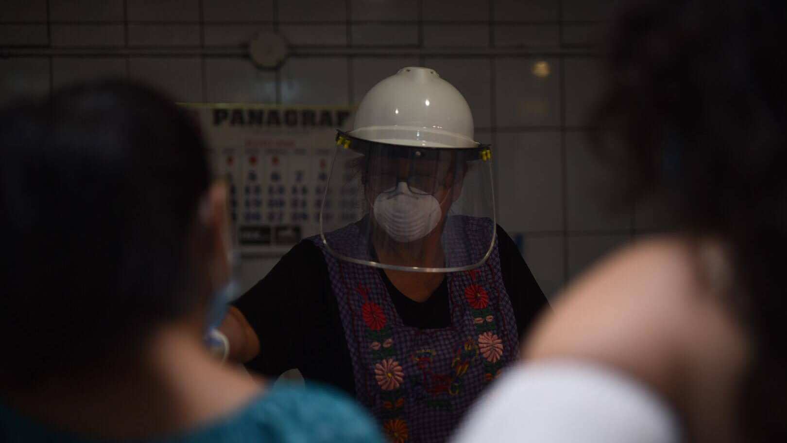 Ramírez utiliza guantes de latex, mascarilla y careta de plástico para atender a sus clientes.