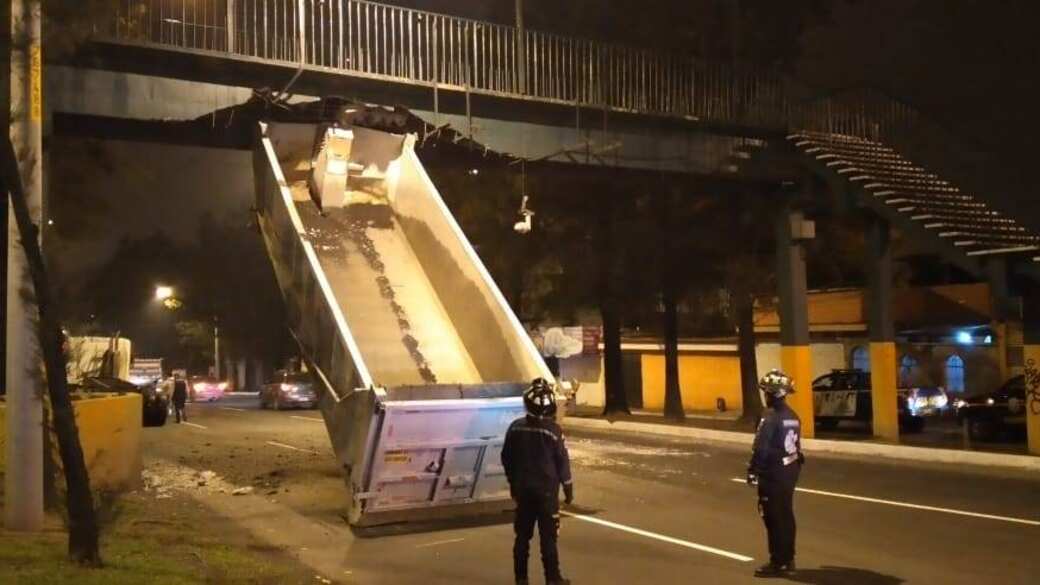 Amílcar Montejo, intendente de la Policía Municipal de Tránsito (PMT) capitalina, dio a conocer que la góndola de carga que llevaba el tráiler se levantó e impactó contra la estructura.