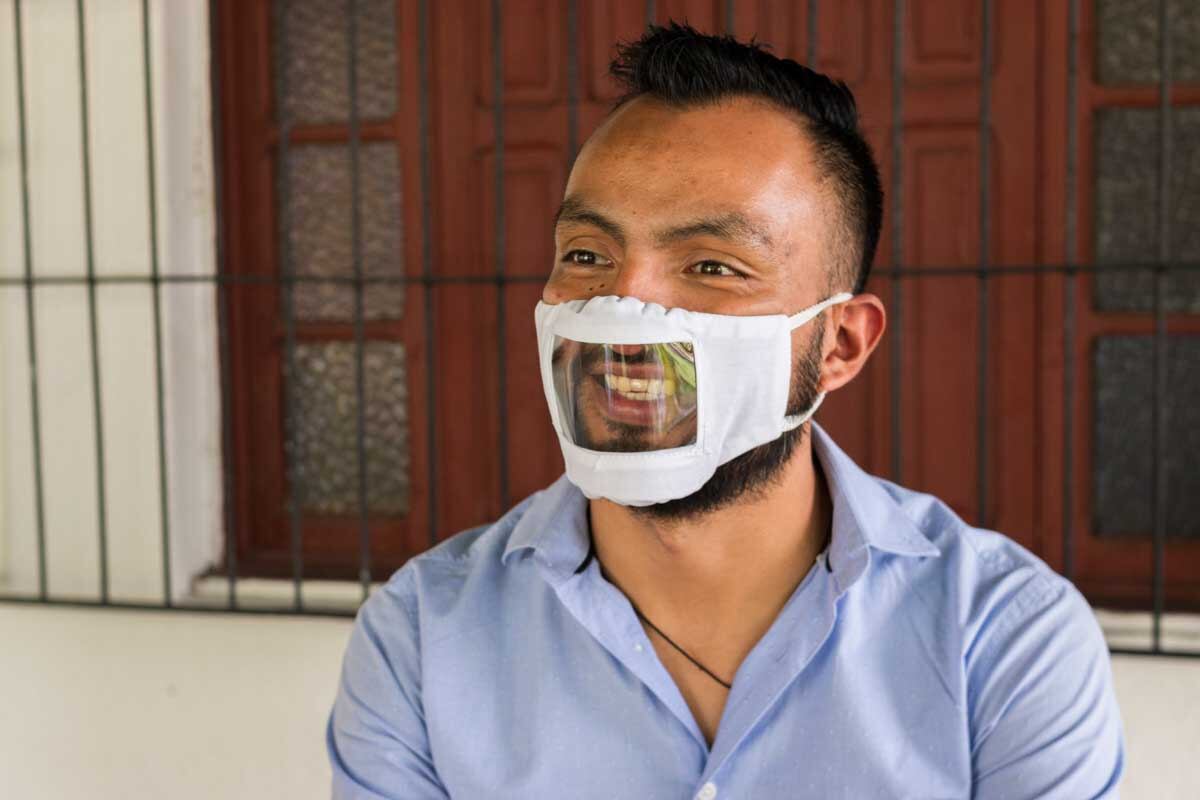 La mascarilla está fabricada para las personas que interactuamos con personas sordas", añade Aguilar.