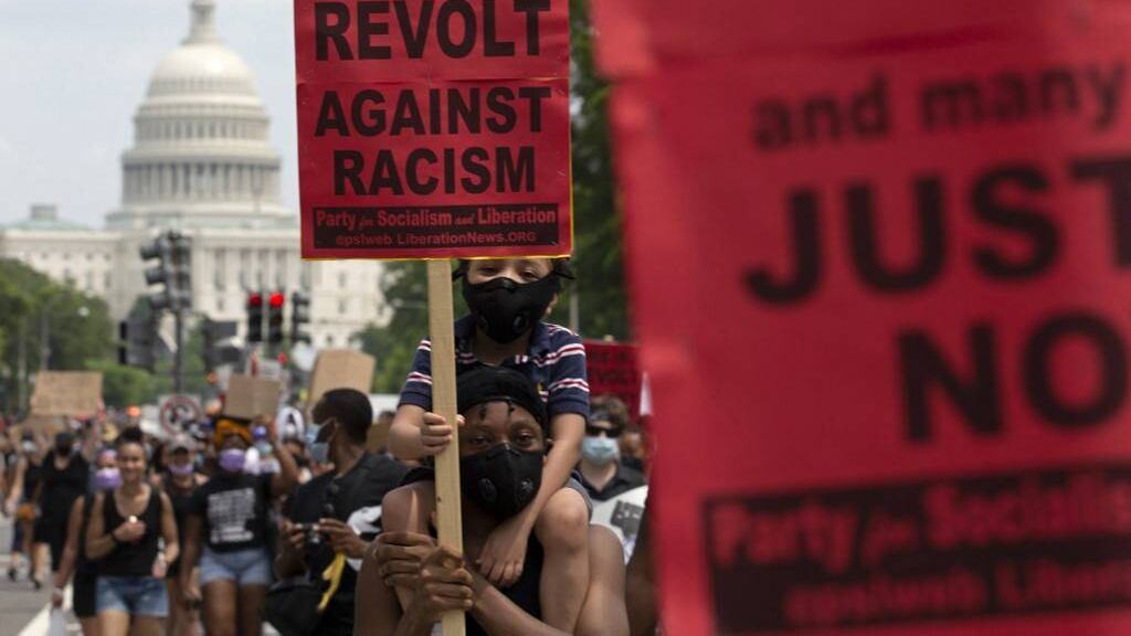 Decenas de miles se manifestaron pacíficamente contra el racismo y la brutalidad policial en todo Estados Unidos el sábado por la muerte el 25 de mayo de George Floyd cuando estaba bajo custodia policial Minnesota.